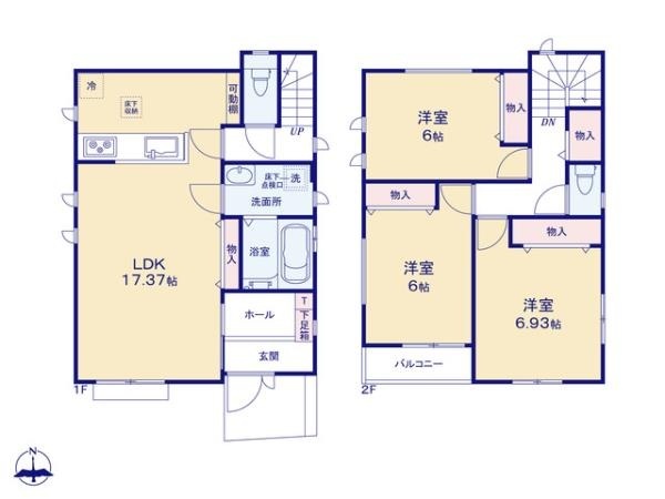 | 間取 | 3LDK (LDK17.37帖、洋室6.93帖、洋室6帖、洋室6帖) | ||