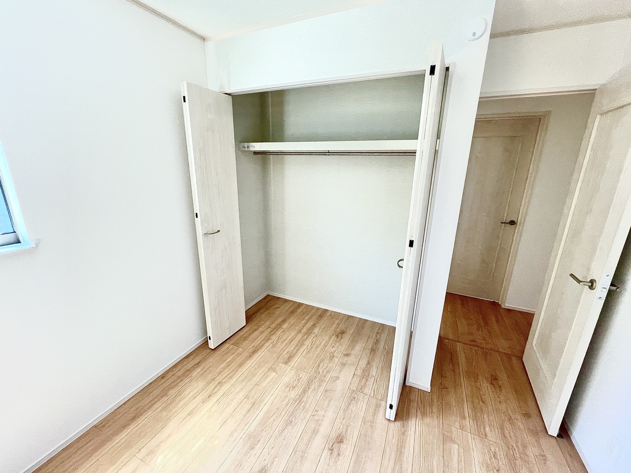 ■クローゼット ハンガーポールと枕棚付きのクローゼット 洋服をいっぱいしまったり、枕棚の上には、あまり使用しないものの収納もできます。