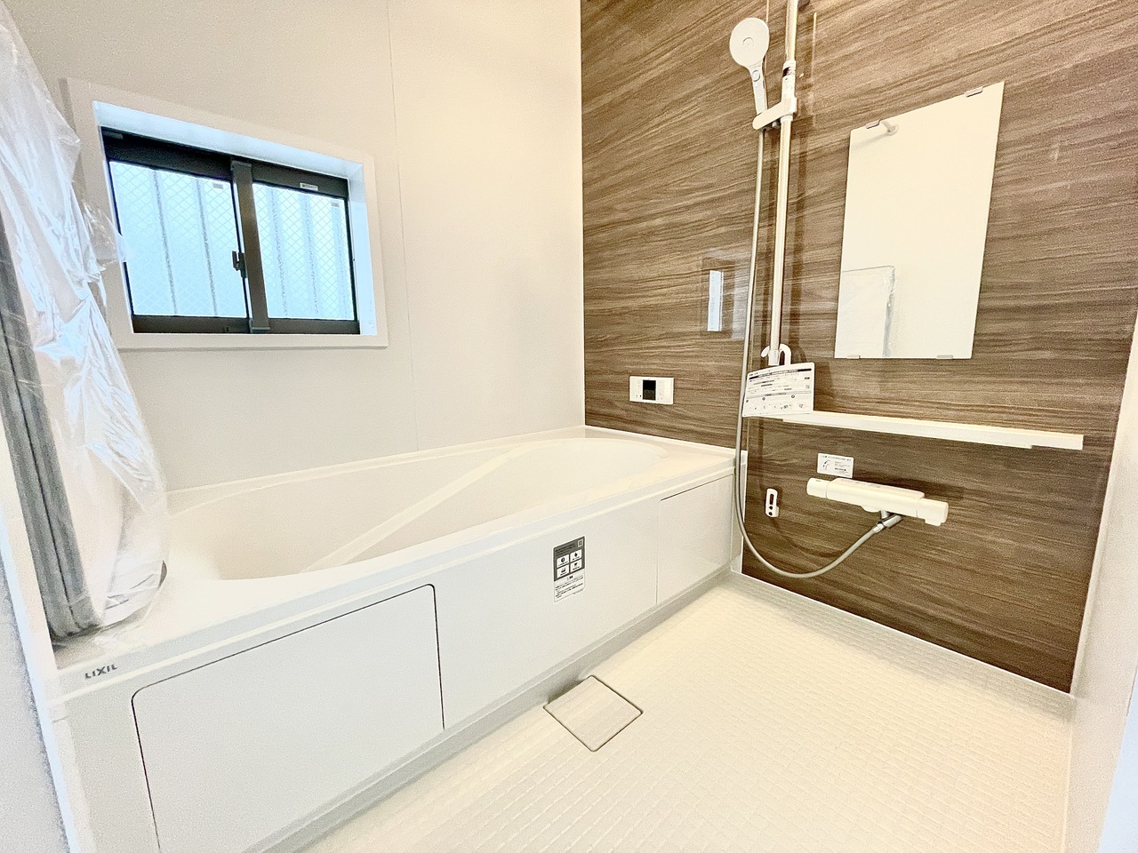 ■浴室乾燥機付きユニットバス(追炊き付き) ユニットバスは全てが浴室のために設計されているため、掃除のしやすさやカビの生えにくさ汚れにくさに特化しています。 素材は汚れが付きにくいものが使用され、お手入れが最小限に抑えられる浴室となっております。
