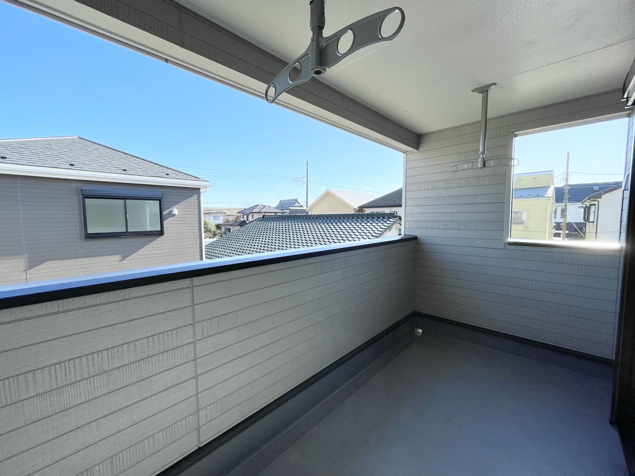 1号棟 バルコニーは南向きでインナーバルコニーを採用。小雨程度であれば雨も防げて家事を助けます。