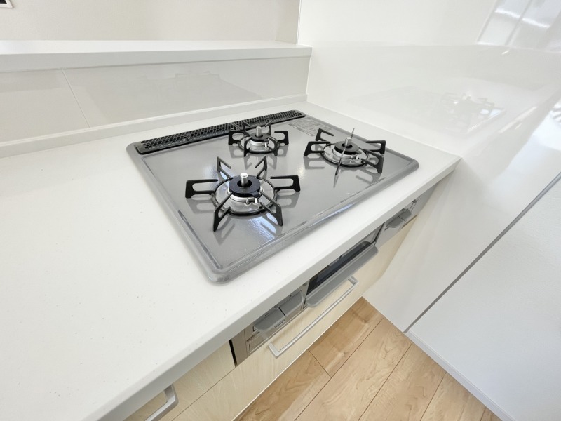 リビングを見渡すことのできる対面式システムキッチン。食洗器や床下収納など嬉しい設備が整っております。
