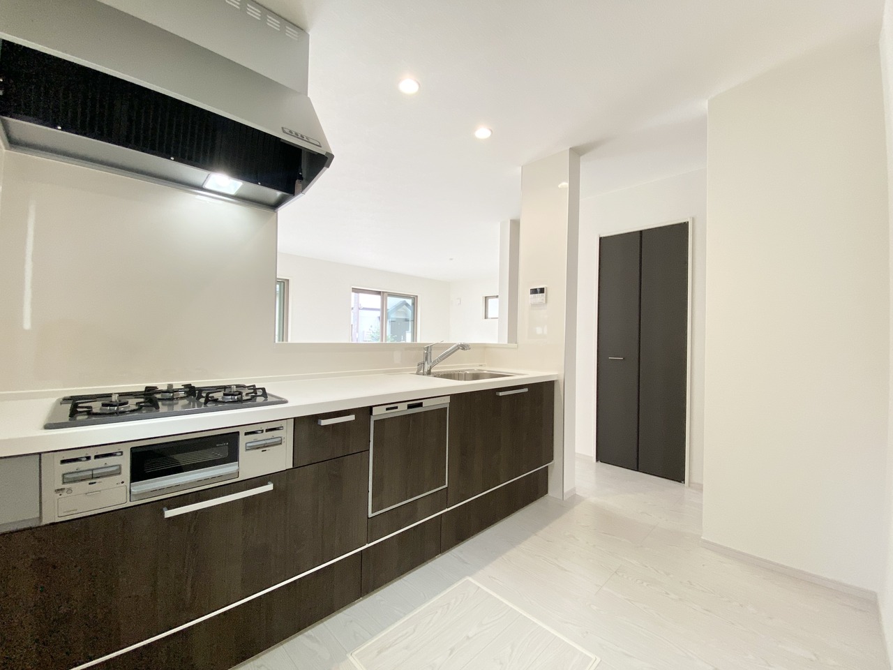 キッチンからはリビング全体を見渡せる設計で、小さなお子様が遊ぶ様子を見守りながら家事を進めることができます。