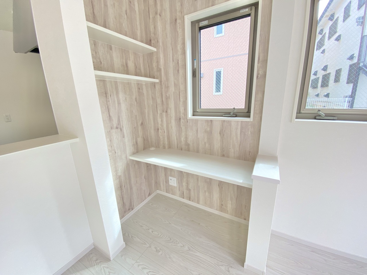 カップボードを置いても十分なスペースがございます。広いワークトップで家事がはかどります◎