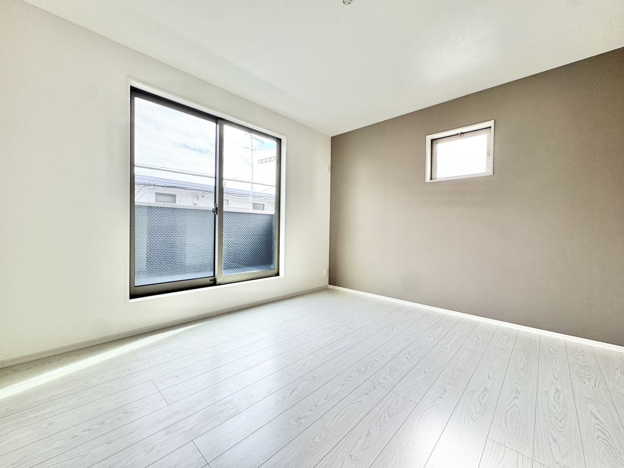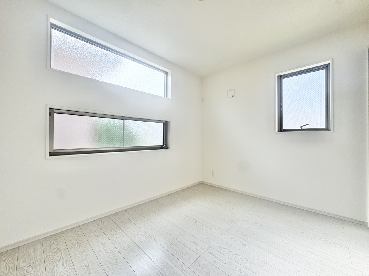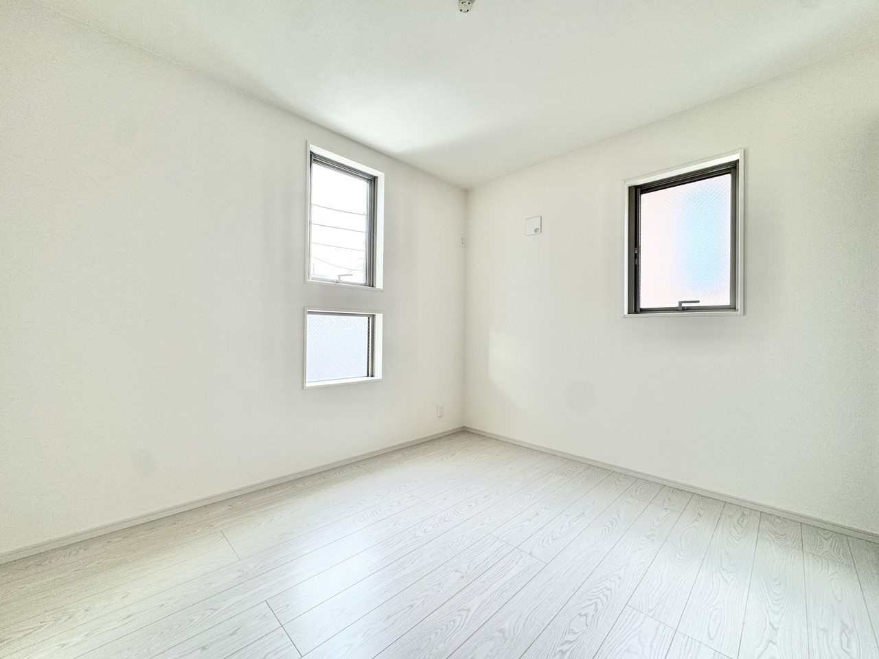 2階約5帖の洋室。全室2面採光となっており、陽当たり良好で建物全体が明るく感じられます。