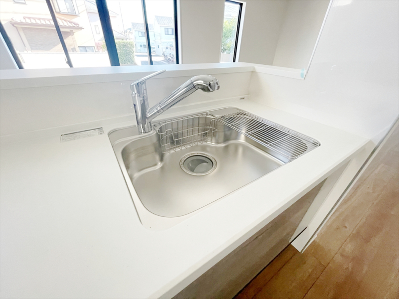 | 設備 | 公営水道、本下水、都市ガス システムキッチン(浄水器付き)・ユニットバス・浴室乾燥機付き・ウォシュレット・シャワー付き洗面化粧台・ペアガラス・テレビモニターフォン付き・全居室収納あり・床下収納あり・カースペース2台可能・庭 等 |