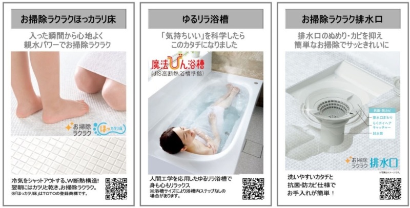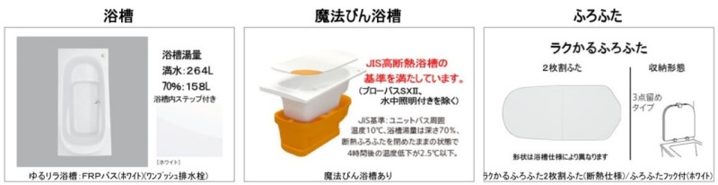 魔法瓶浴槽で保温もしっかり。お掃除もらくらく排水口。お掃除がらくちんなほっカラリ床。