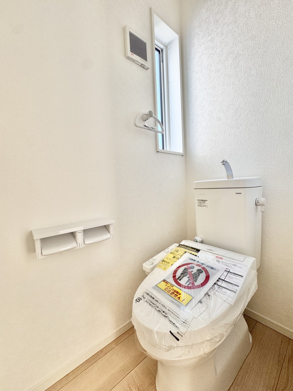 洗浄機能・脱臭機能を完備、開口窓も設け清潔な室内にすることが可能です。 また温水洗浄便座は、デリケートな皮膚などを清潔に保つことができ、便座も温度調節ができるので、寒い冬も快適にトイレに座ることが可能。
