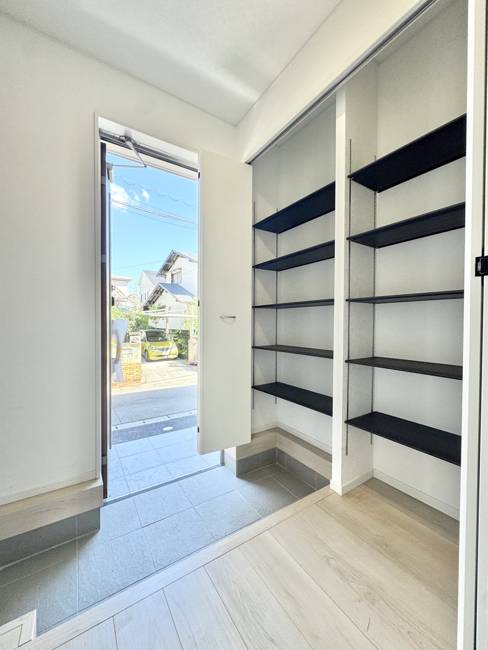 1号棟 シューズボックスに加えて、シューズインクローゼットもございますので玄関もスッキリとお使い頂けます。