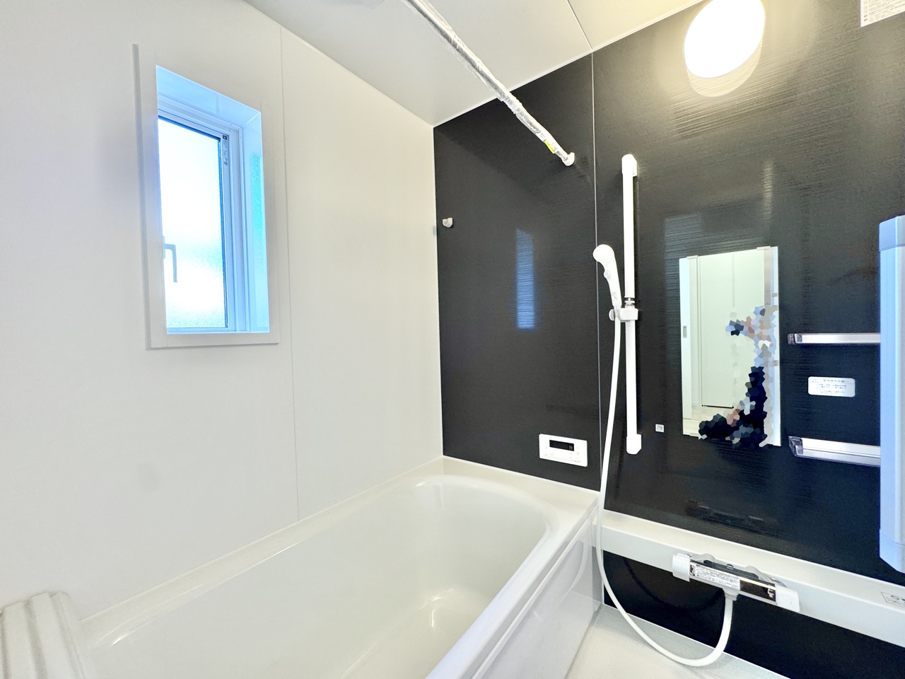1号棟 足を伸ばせるタイプの浴槽になります。こちらの浴室でごゆっくりとお過ごしください。