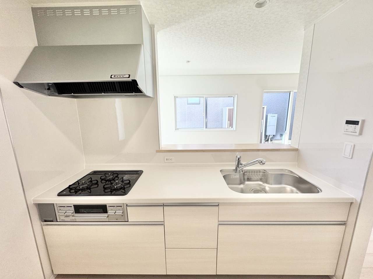1号棟 3口コンロや魚焼きグリルがございますので、お料理の幅も広がってきそうです。