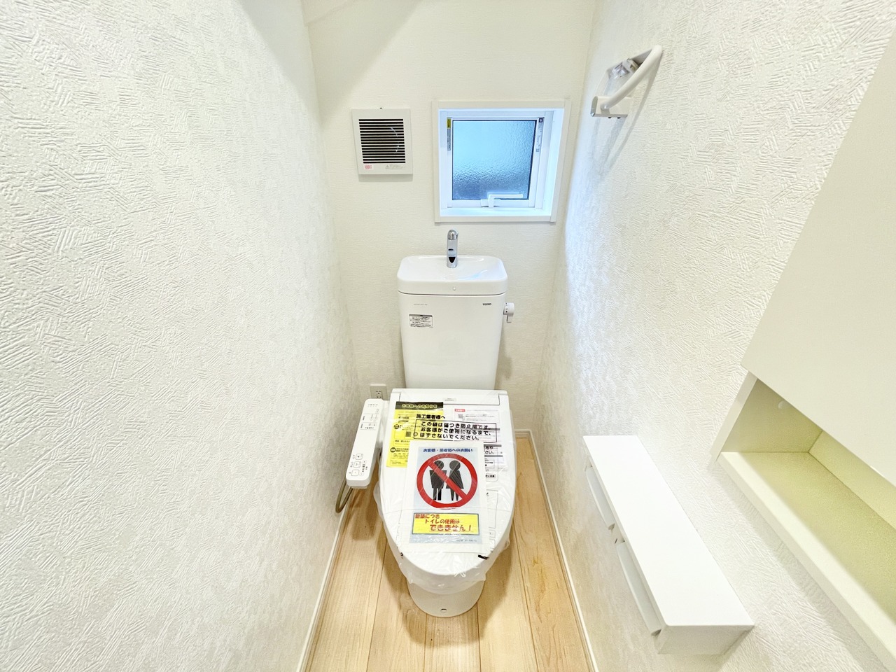 洗浄機能・脱臭機能を完備、開口窓も設け清潔な室内にすることが可能です。 また温水洗浄便座は、デリケートな皮膚などを清潔に保つことができ、便座も温度調節ができるので、寒い冬も快適にトイレに座ることが可能。