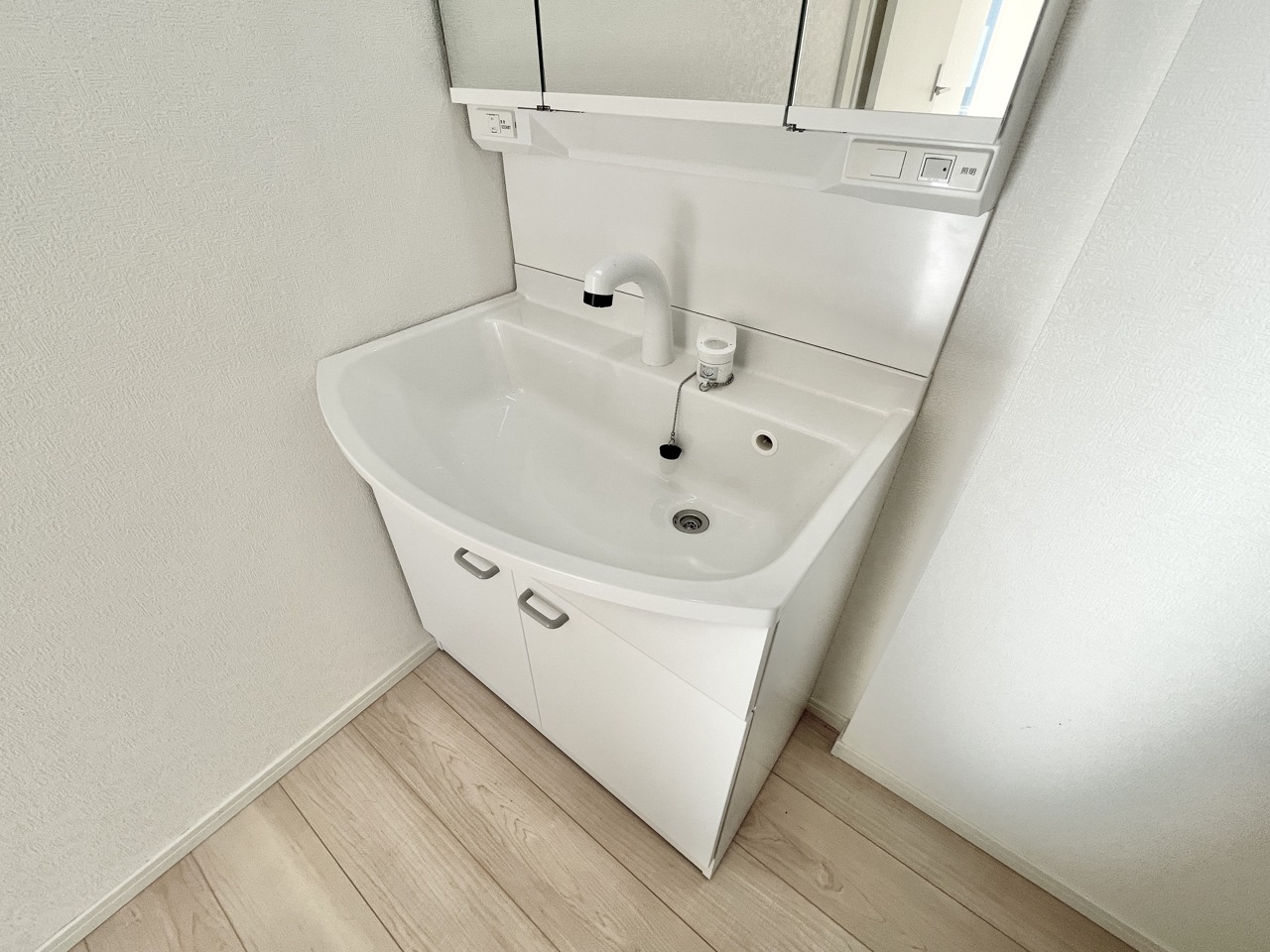 3面鏡タイプの洗面台となっておりますのでお支度の際も安心です。