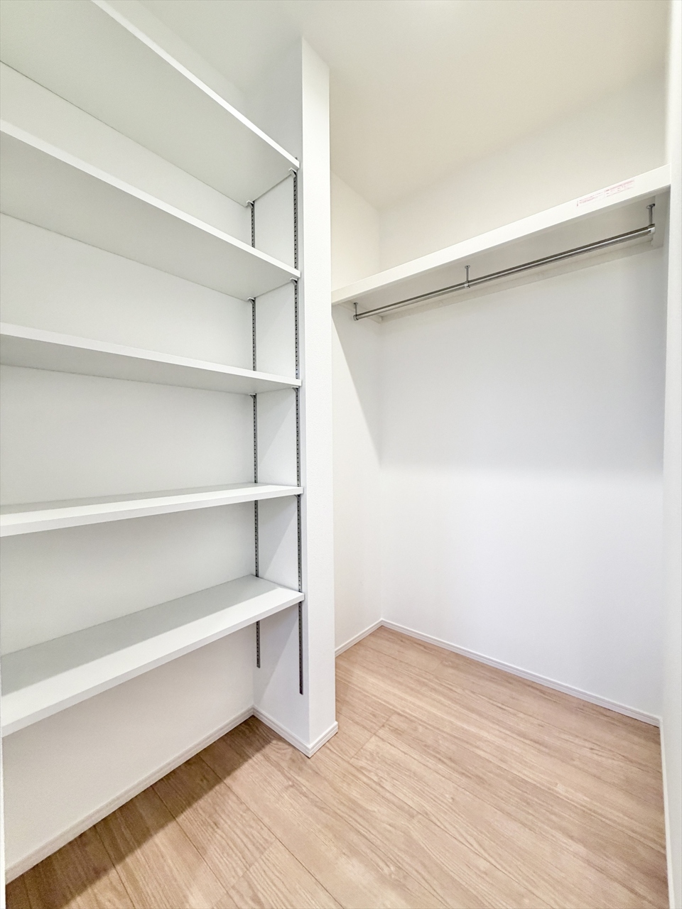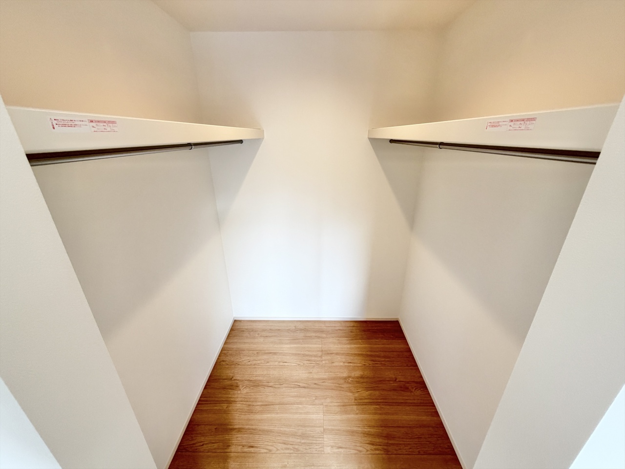 主寝室には両サイドに枕棚とハンガーパイプの付いたウォークインクローゼット完備しております。