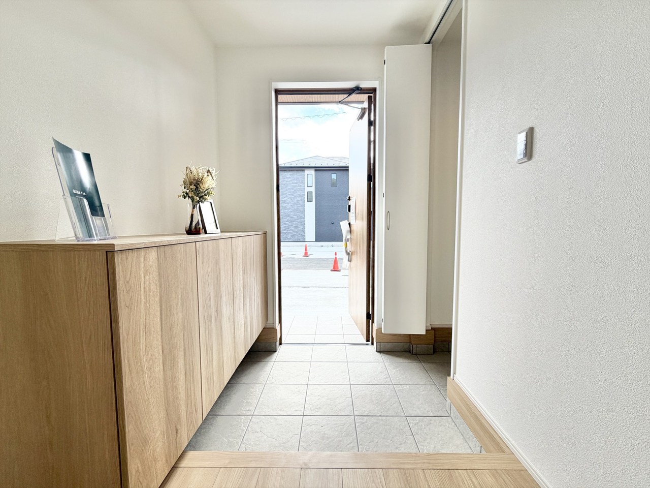 玄関にはシューズボックスに加えてシューズインクローゼットも完備しております。来客時に隠せる戸がついている点も嬉しいポイントです。