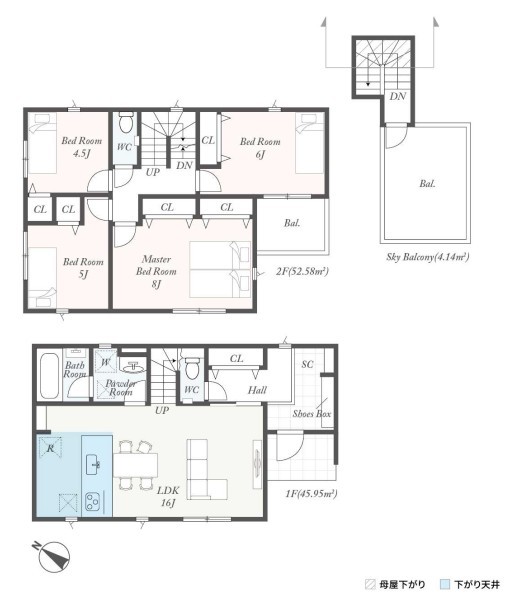 | 間取 | 4LDK (LDK16帖、洋室8帖、洋室6帖、洋室5帖、洋室4.5帖) | ||
