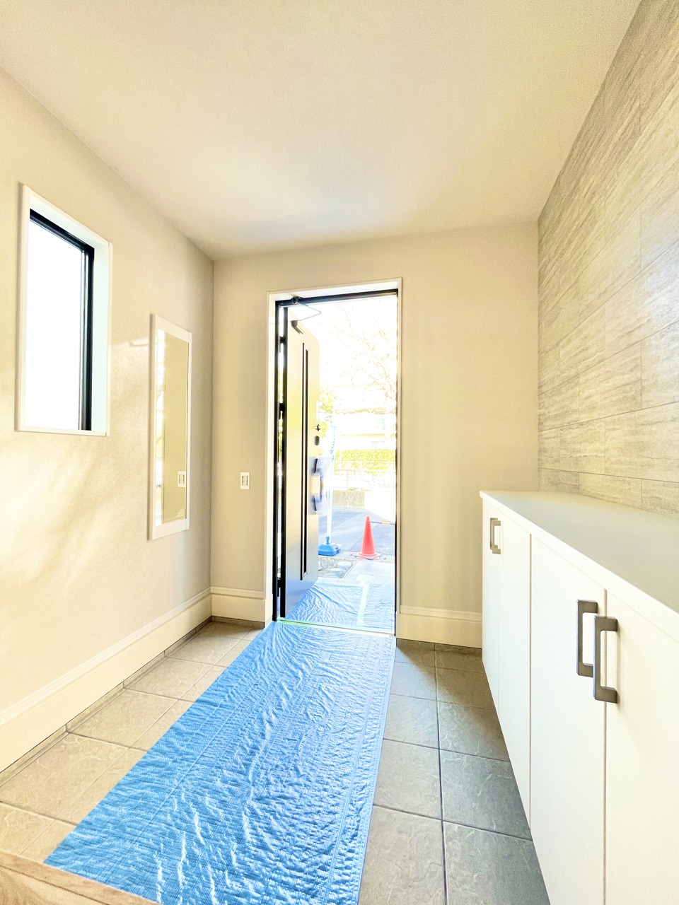 ゆとりある玄関スペース。注文建築のようなゆとりでお洒落な玄関からお客様をお出迎え。