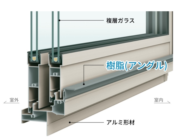 サッシと窓枠のつなぎ目に、結露に強い「樹脂アングル」が使われています。 結露による窓枠の汚れやカビの発生を軽減でき、お手入れがラクになります。