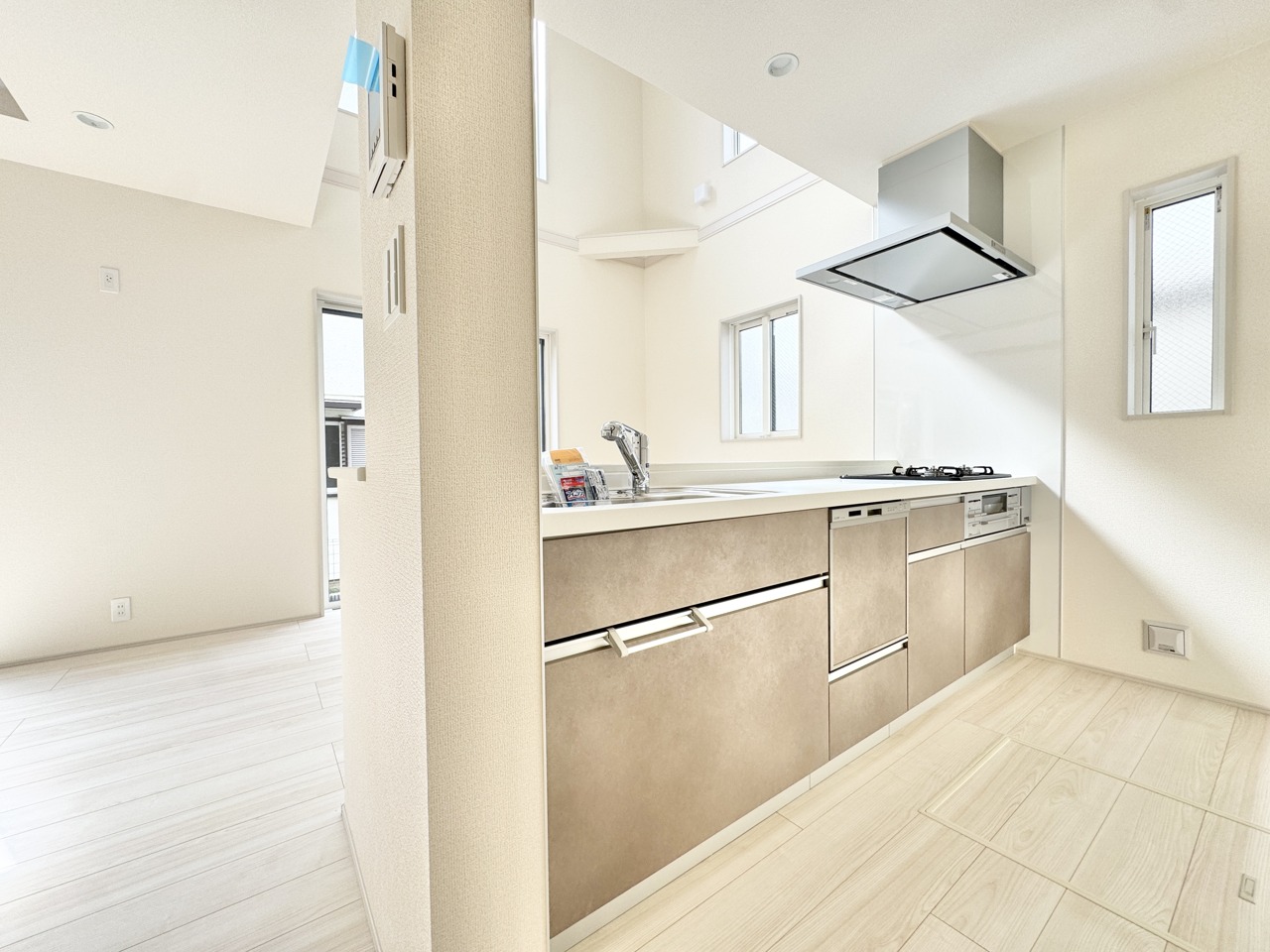 食洗機や浄水器、三口コンロなど、毎日の家事を効率的にサポートする充実設備も標準装備。