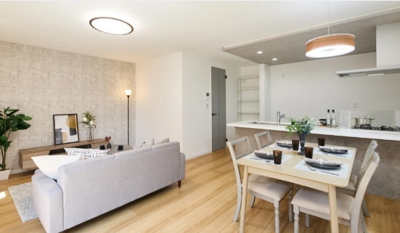 家族が集まるLDKは、温かな光に満ちた開放的な空間