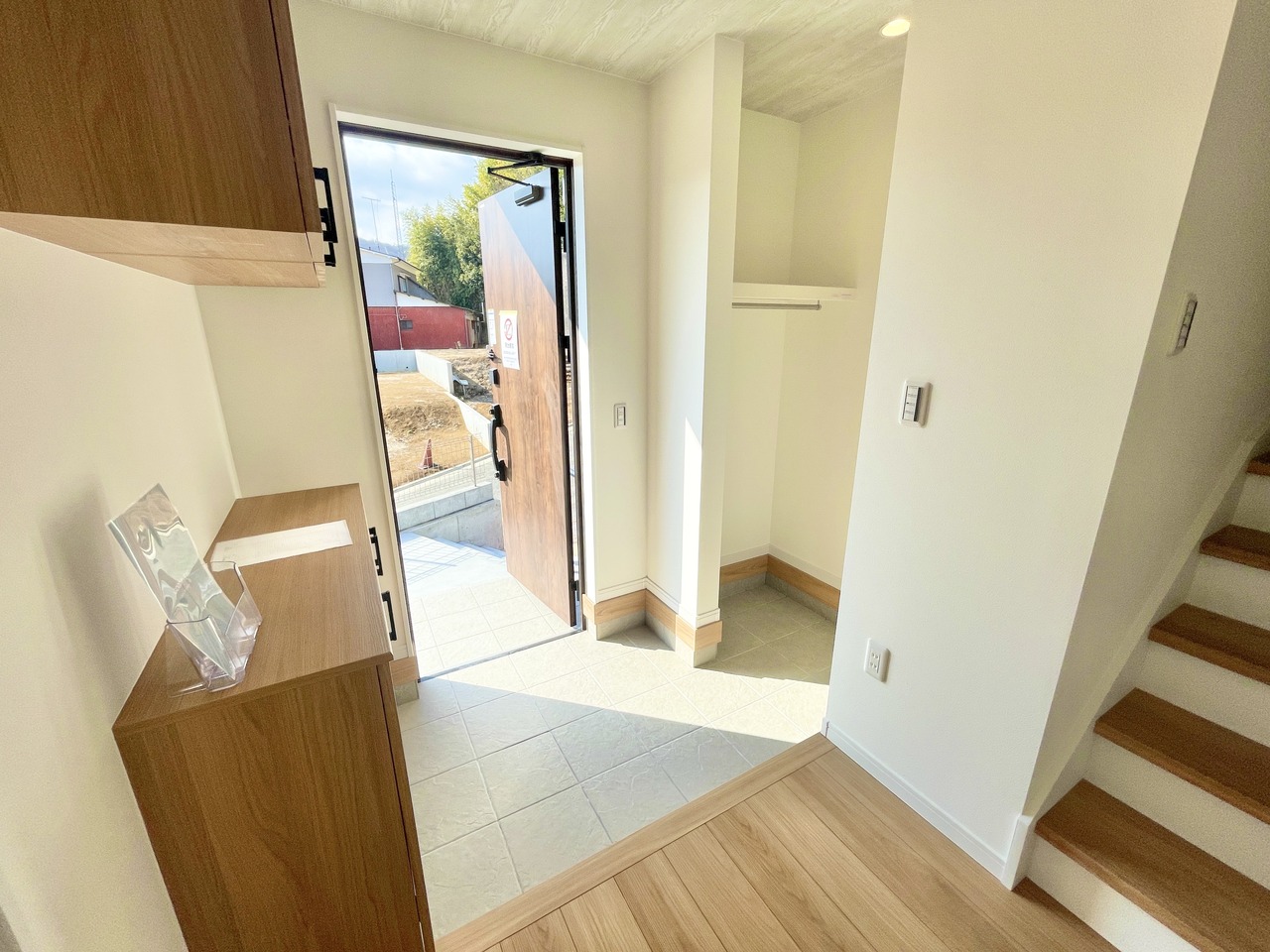 4号棟 玄関横にはシューズクロークがあり、ハンガーをかけるポールもあるため、帰宅後の上着を掛ける場所にしても良さそうです◎