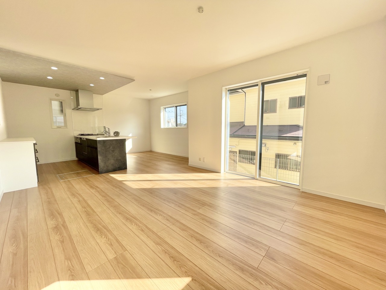 1号棟 家族が集まるLDKは、温かな光に満ちた開放的な空間