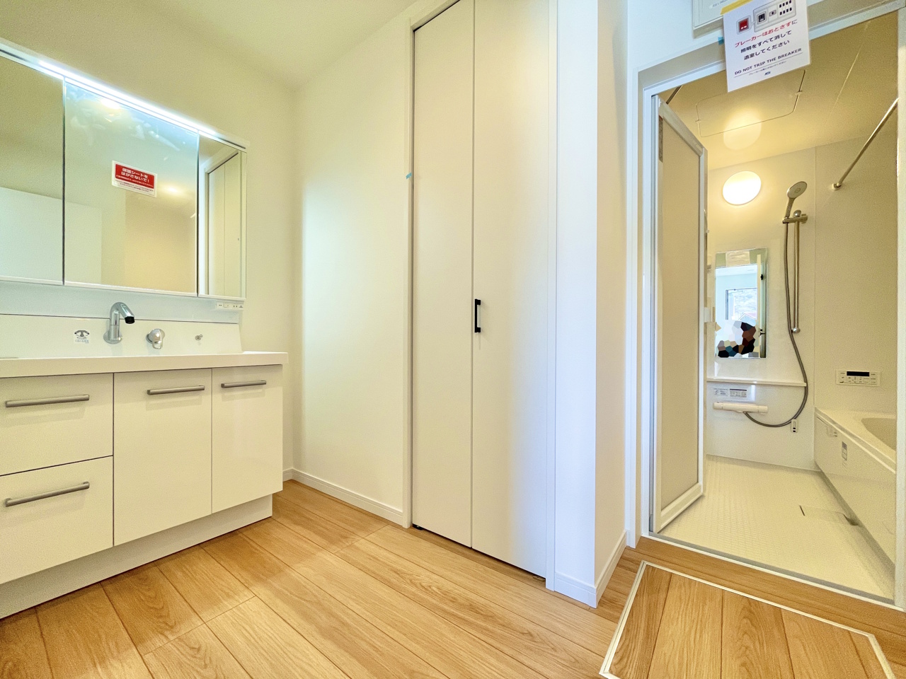 4号棟 洗面所にはファミリークロークがあるため、用途に合わせてたっぷり収納していただけます。