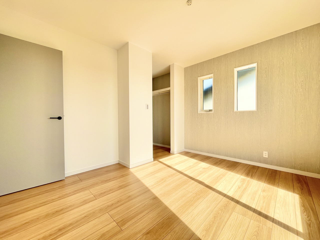 4号棟 たっぷり収納が可能なWIC付◎ 明るい光がたっぷり入る心地よい洋室。広々クローゼットで収納もばっちり!シンプルで使いやすい空間だから、子ども部屋にも寝室にもぴったりです。