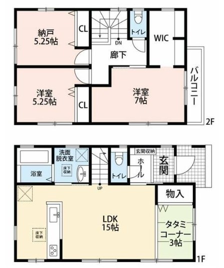 | 間取 | 2SLDK+タタミコーナー3帖 (LDK15帖、洋室7帖、洋室5.25帖、S5.25帖) | ||