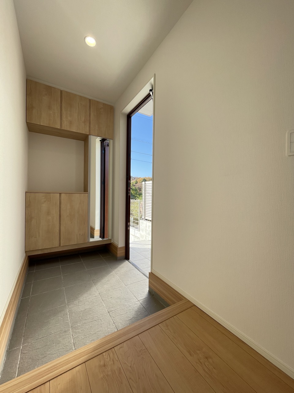■玄関 ゆとりのある玄関です。 シューズの収納もでき、カウンター台もあるので、飾り棚に使用したりもできます。