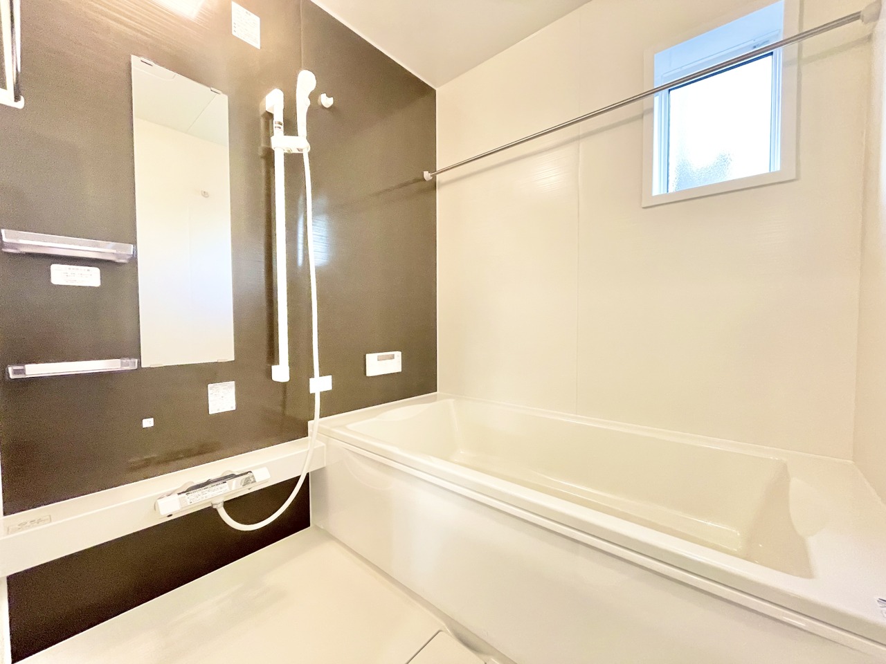 ■浴室乾燥機付きユニットバス(追炊き付き) ユニットバスは全てが浴室のために設計されているため、掃除のしやすさやカビの生えにくさ汚れにくさに特化しています。 素材は汚れが付きにくいものが使用され、お手入れが最小限に抑えられる浴室となっております。