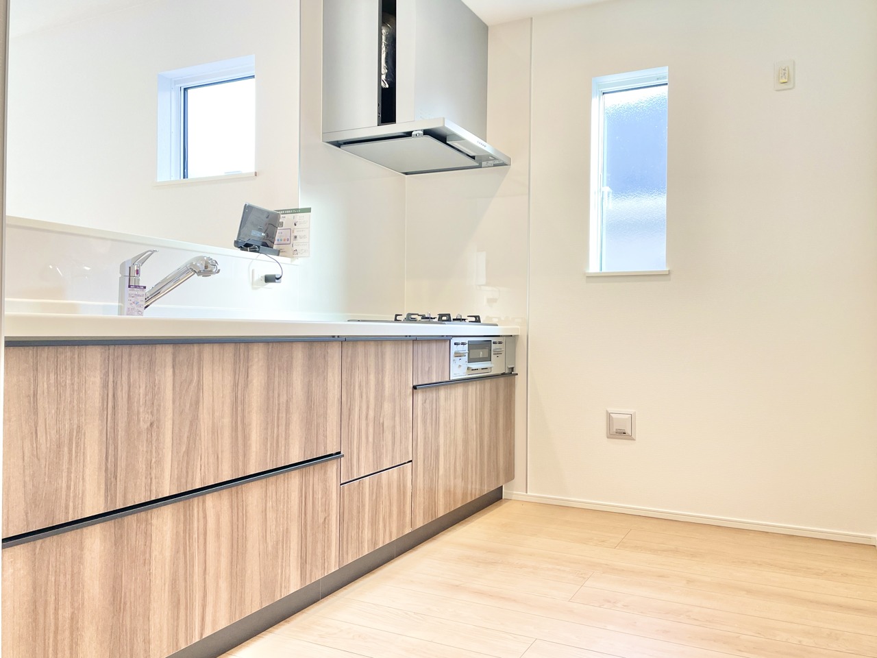 お洒落な木目調のキッチンです。 きれいでお洒落なキッチンは、お料理も楽しくなります。