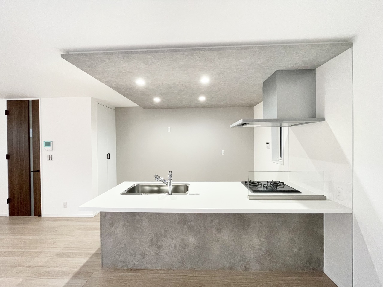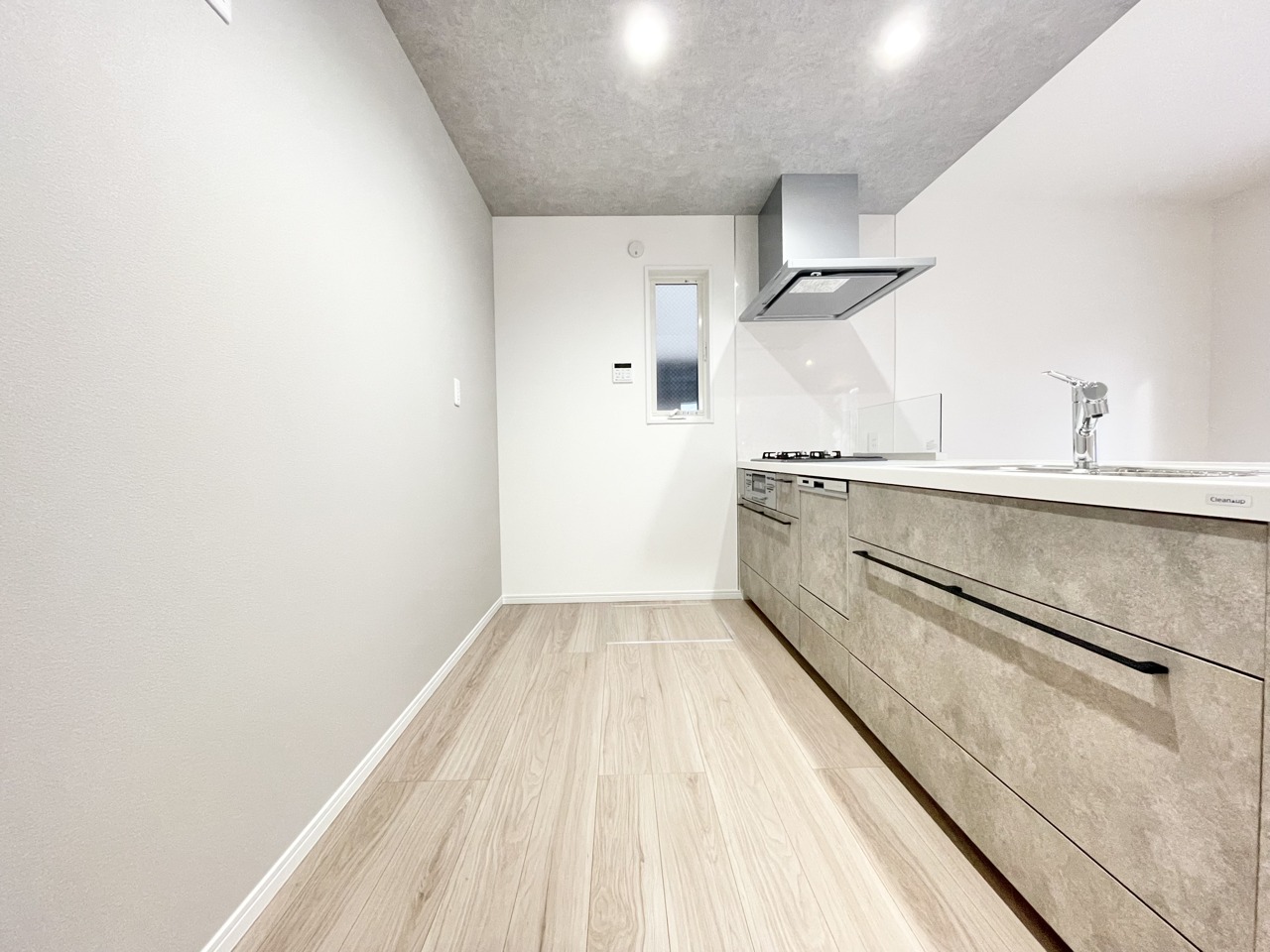 注文建築にも劣らないデザインと仕様の新築戸建。こだわりのキッチンは天板が90センチとゆとりがあり、ストレス少なくお料理ができそうです。