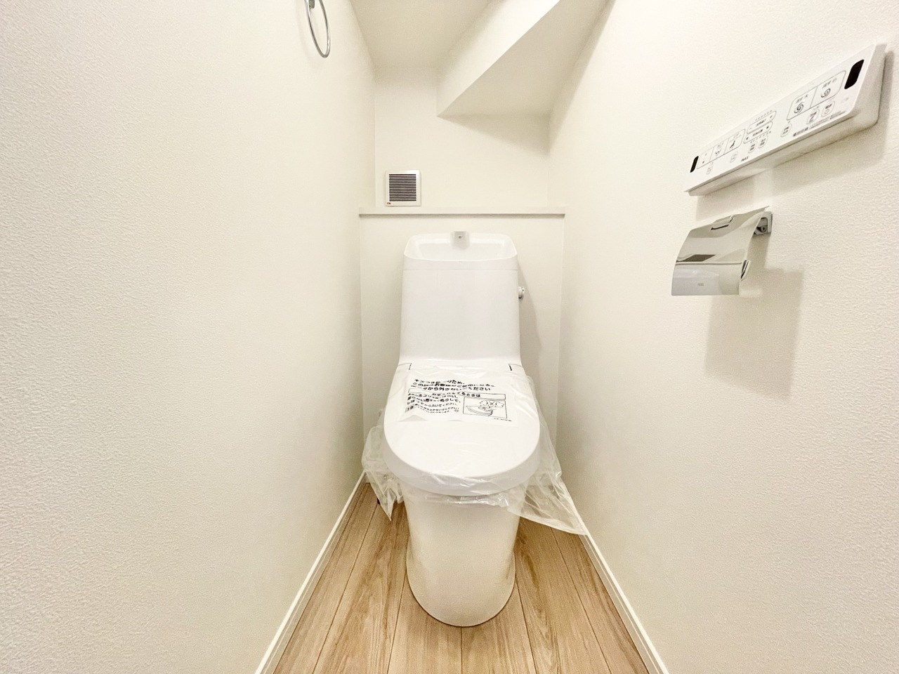 温水洗浄便座。ボタン一つで水が流れる嬉しい設備。