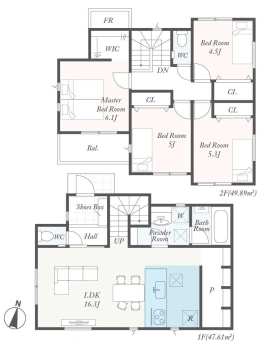 | 間取 | 4LDK (LDK16.3帖、洋室6.1帖、洋室5.3帖、洋室5帖、洋室4.5帖) | ||