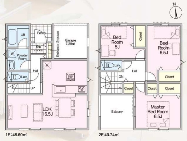 | 建物面積 | 92.34m² 公簿 (別途ルーフバルコニー約7.29平米あり。車庫部分約7.29平米含む。) | ||
