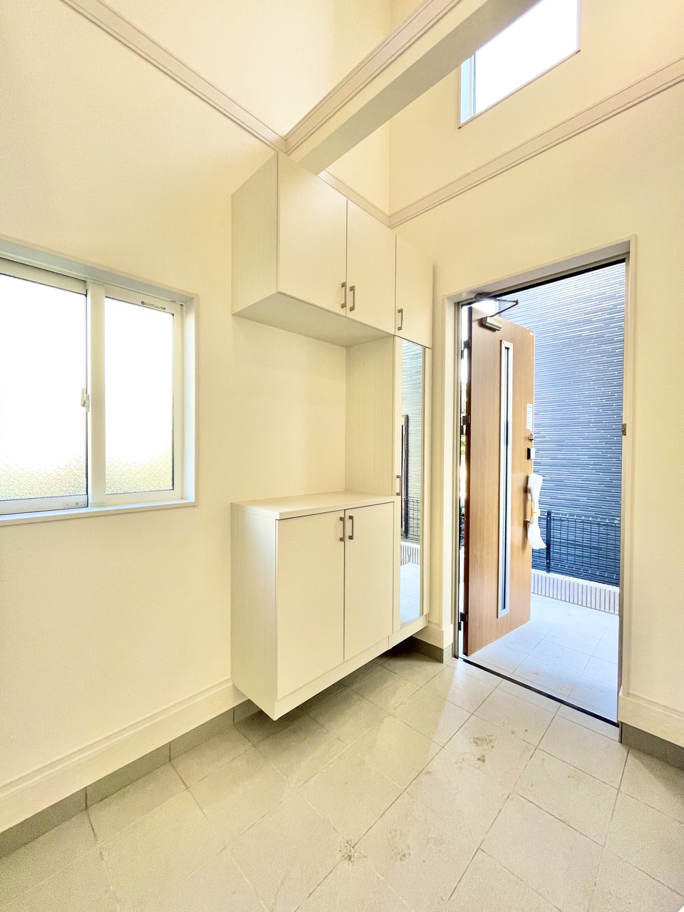 2号棟 ファミリータイプンの4LDK 玄関吹抜付きでスッキリしている玄関です。