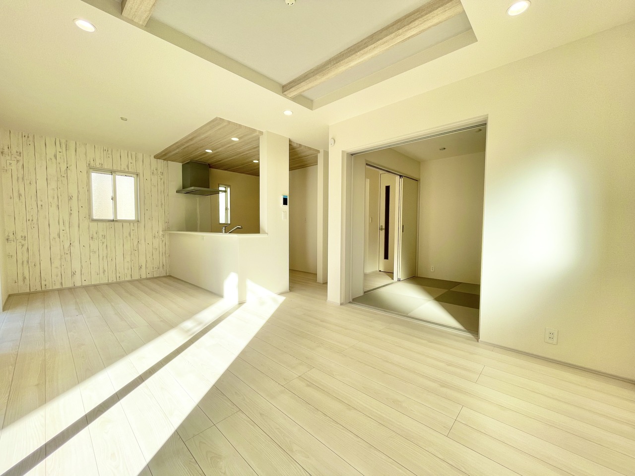 2号棟 LDK17帖は広々としたリビング。南側からの日差しが入るため、日中は明るい空間です◎