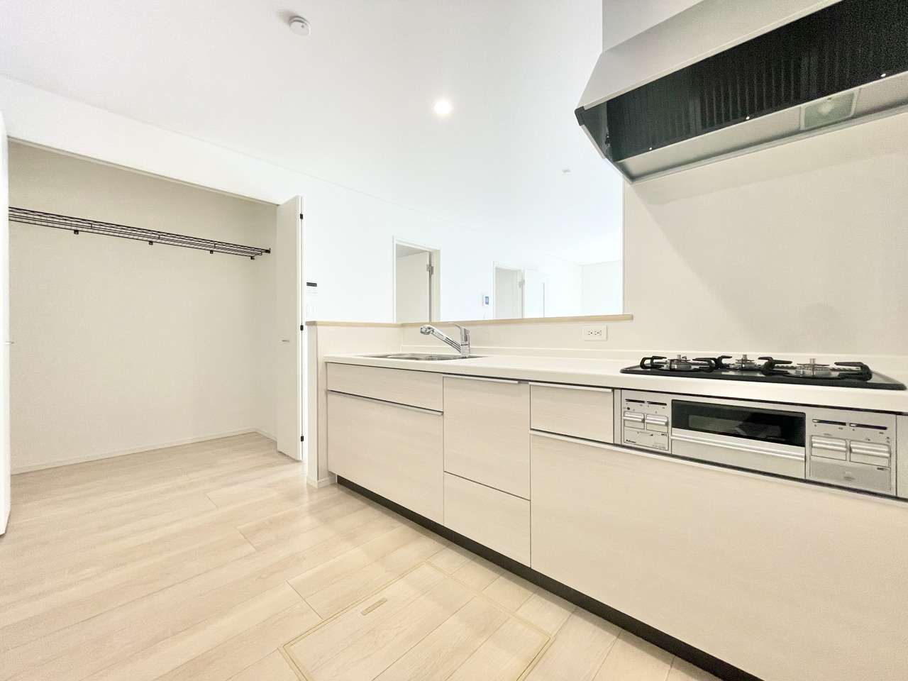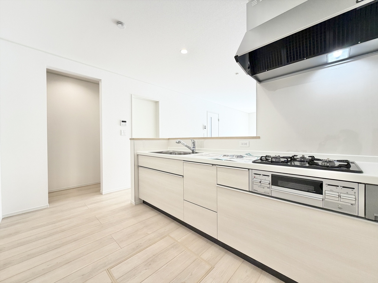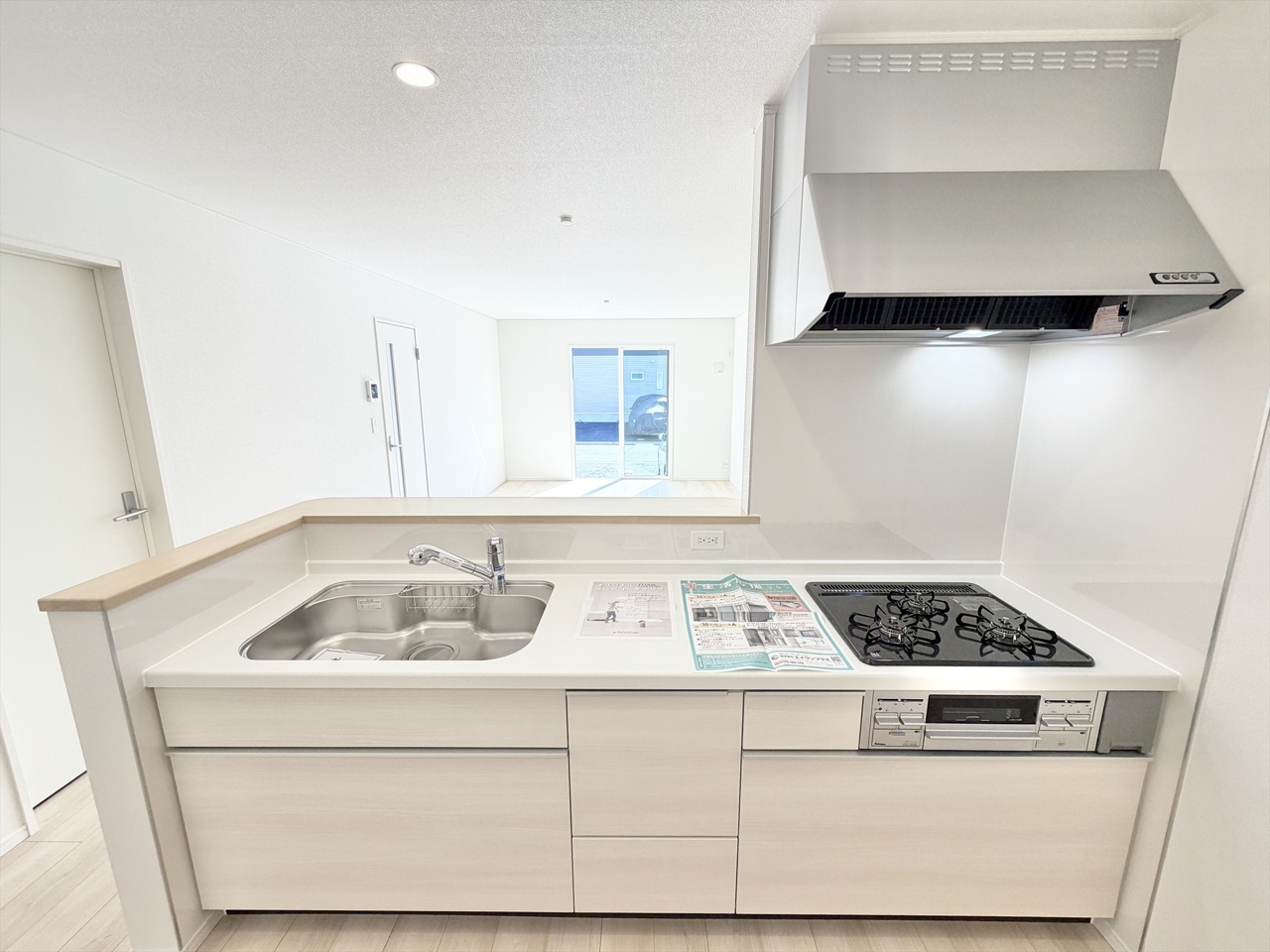 3号棟 調理道具や食器、調味料などがしっかり収まる豊富な収納を確保。キッチンまわりをいつでもスッキリと保てるため、急な来客時にも慌てる心配がありません。