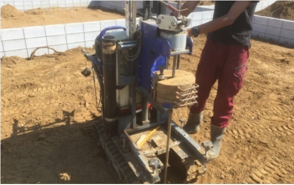 着工前には、1棟ごとに専門業者による地盤調査を実施しています。必要に応じて、地盤の改良工事も行い、地盤の安全を確保しています。