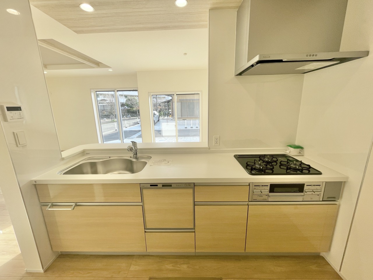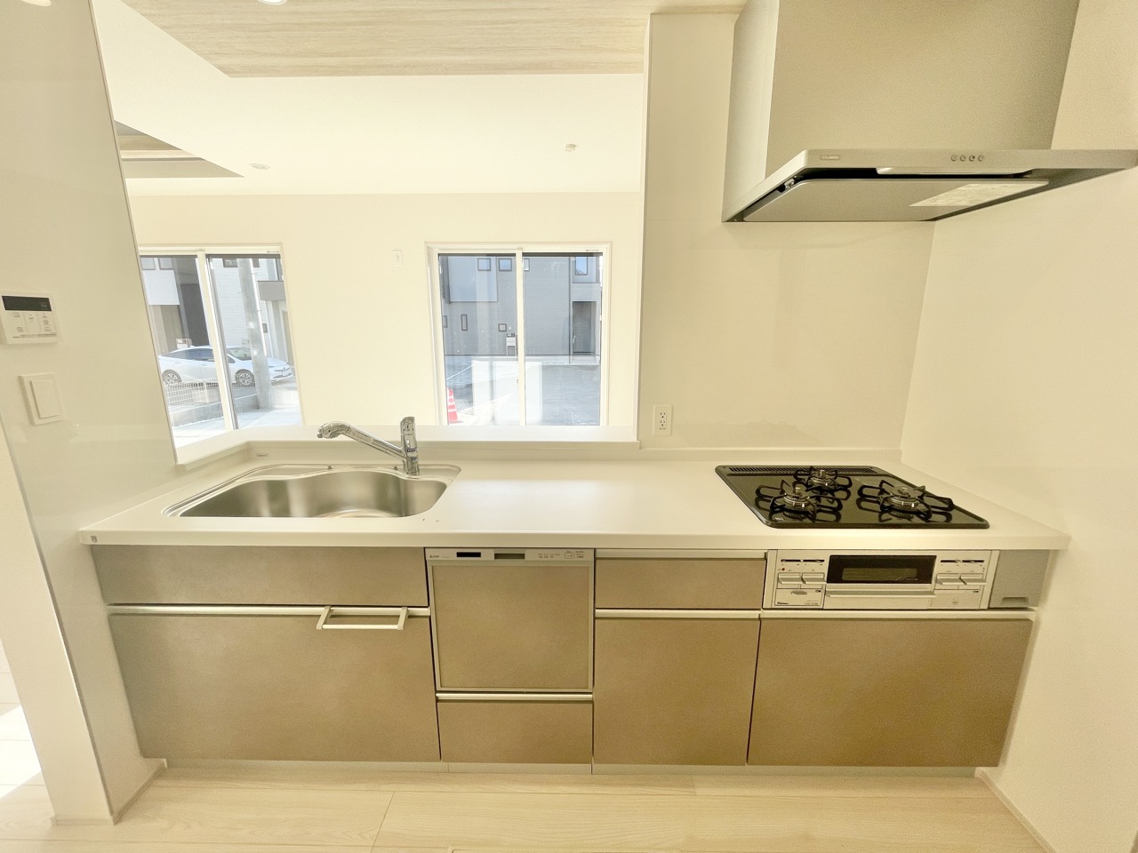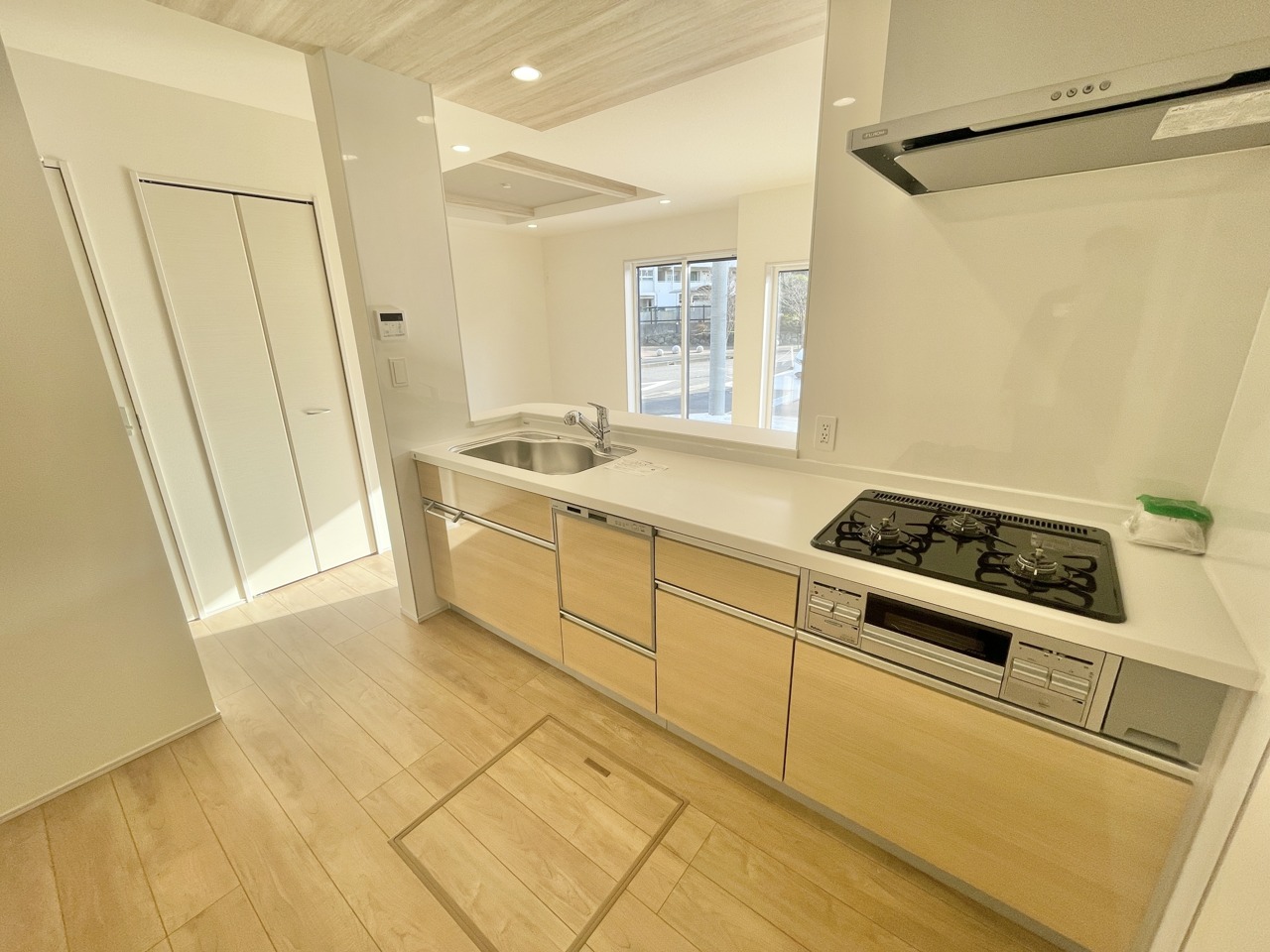 6号棟 スタイリッシュな対面キッチンで、家族や友人との会話も弾む空間。広々ワークトップと充実収納で毎日の料理がもっと楽しく、片付けもラクにできる心地よい住まいです。