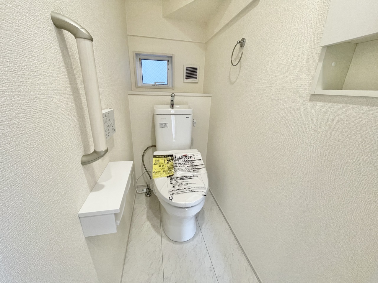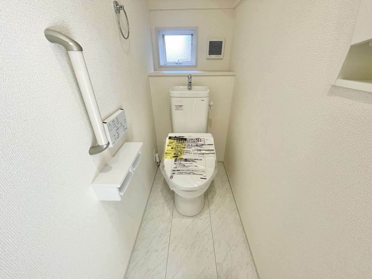 2号棟 ■ウォシュレット付きトイレ 洗浄機能・脱臭機能を完備、開口窓も設け清潔な室内にすることが可能です。 また温水洗浄便座は、デリケートな皮膚などを清潔に保つことができ、便座も温度調節ができるので、寒い冬も快適にトイレに座ることが可能。 2026/02/23m