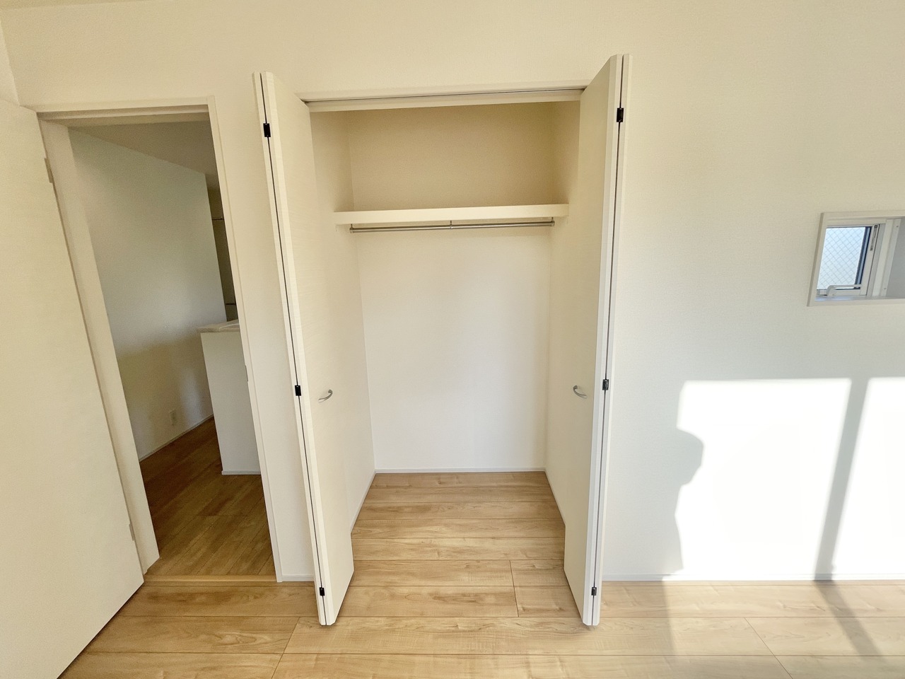 2号棟 やさしい光が差し込む、シンプルで心落ち着く洋室。大きなクローゼット付きで収納もすっきり、毎日の片付けも楽しくなります。家具の配置もしやすく、寝室にも子ども部屋にもぴったり。自分らしい時間を大切にできる、ちょうどいいプライベート空間です。 2026/02/23m