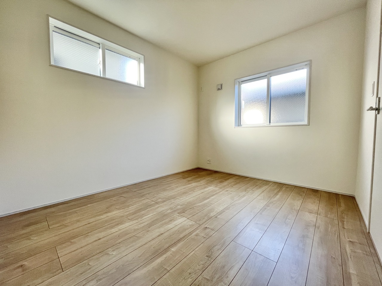 2号棟 やさしい光が差し込む、シンプルで心落ち着く洋室。大きなクローゼット付きで収納もすっきり、毎日の片付けも楽しくなります。家具の配置もしやすく、寝室にも子ども部屋にもぴったり。自分らしい時間を大切にできる、ちょうどいいプライベート空間です。