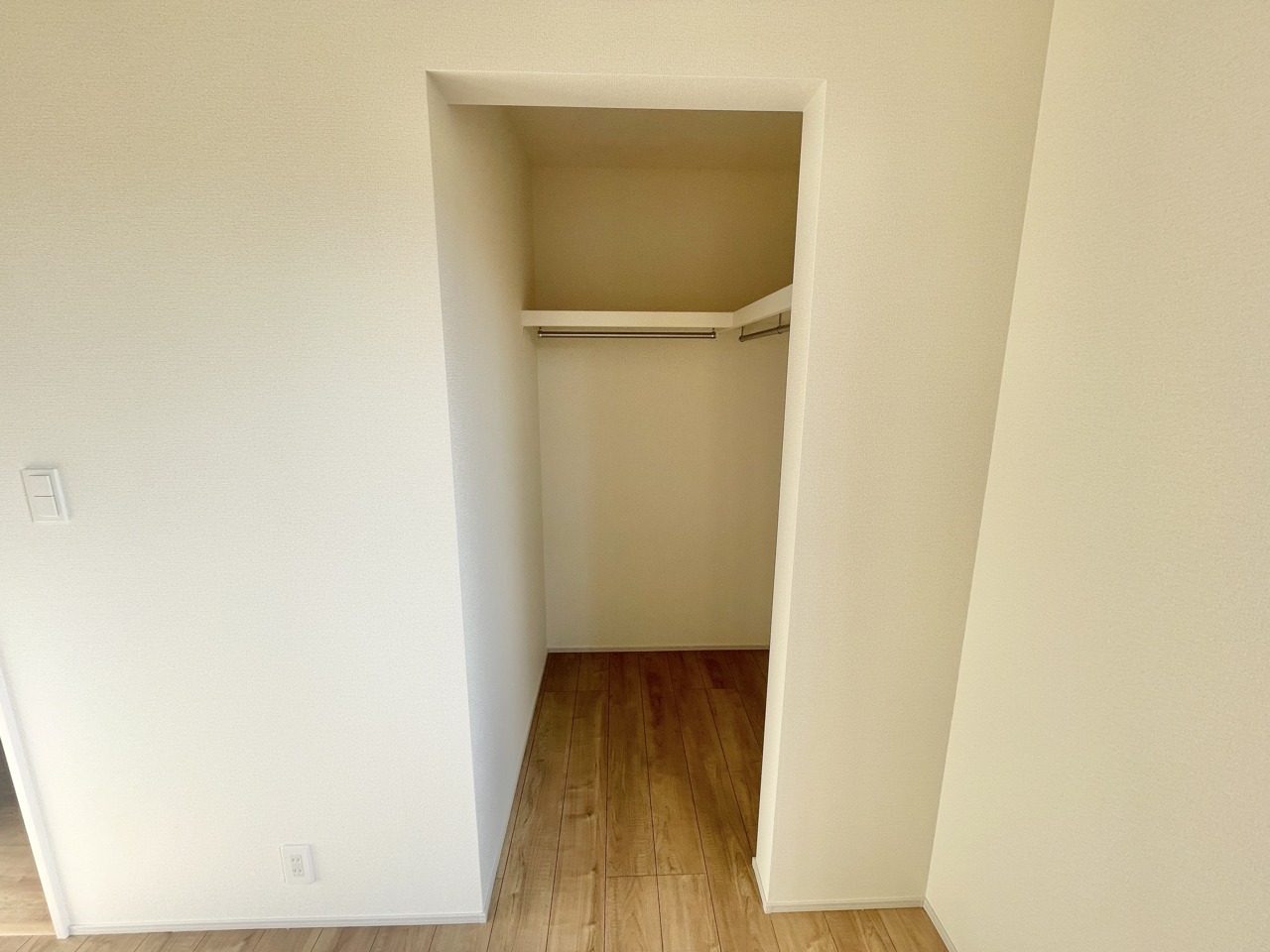 6号棟 やさしい光が差し込む、シンプルで心落ち着く洋室。大きなウォークインクローゼット付きで収納もすっきり、毎日の片付けも楽しくなります。家具の配置もしやすく、寝室にも子ども部屋にもぴったり。自分らしい時間を大切にできる、ちょうどいいプライベート空間です。