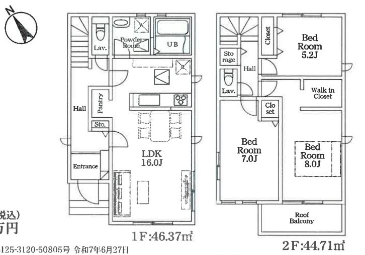 | 建築確認番号 | 第KS125-3120-50805号 | 駐車スペース | 2台(カースペース) |