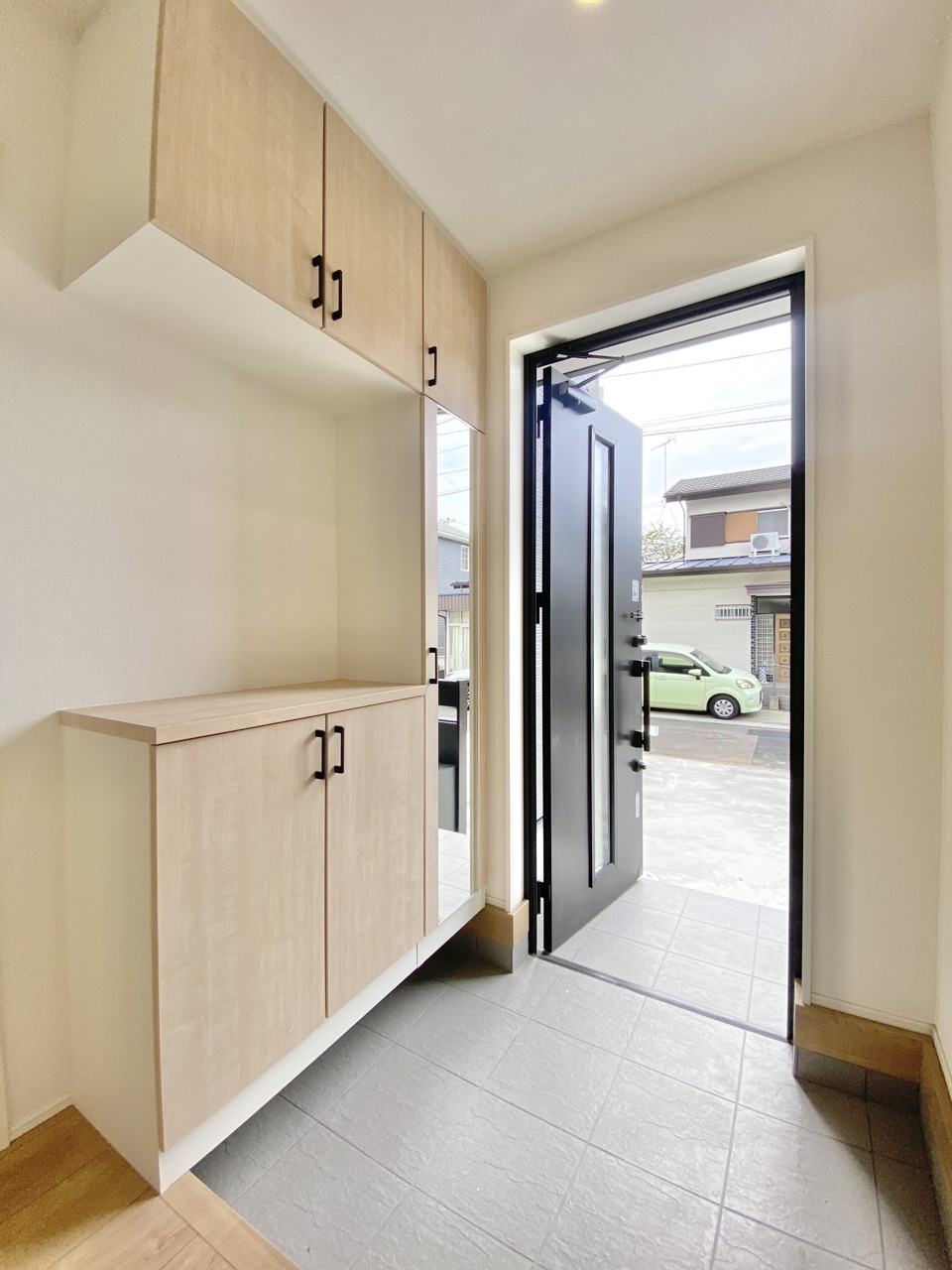 - タッチレス水栓や宅配ボックス、食洗器完備など充実設備の新築は、長期優良住宅で耐震等級3や、子育てグリーン住宅支援事業(補助金)も対象です。完成したばかりの物件を是非一度ご覧になってみてください。