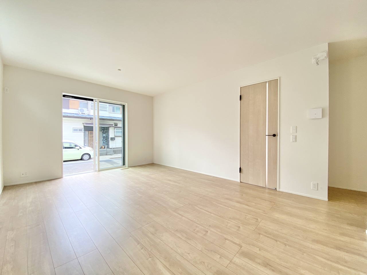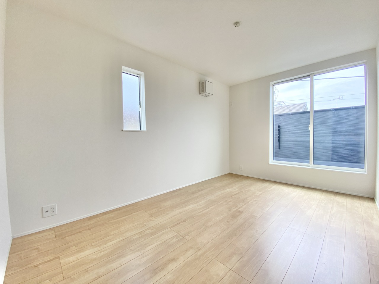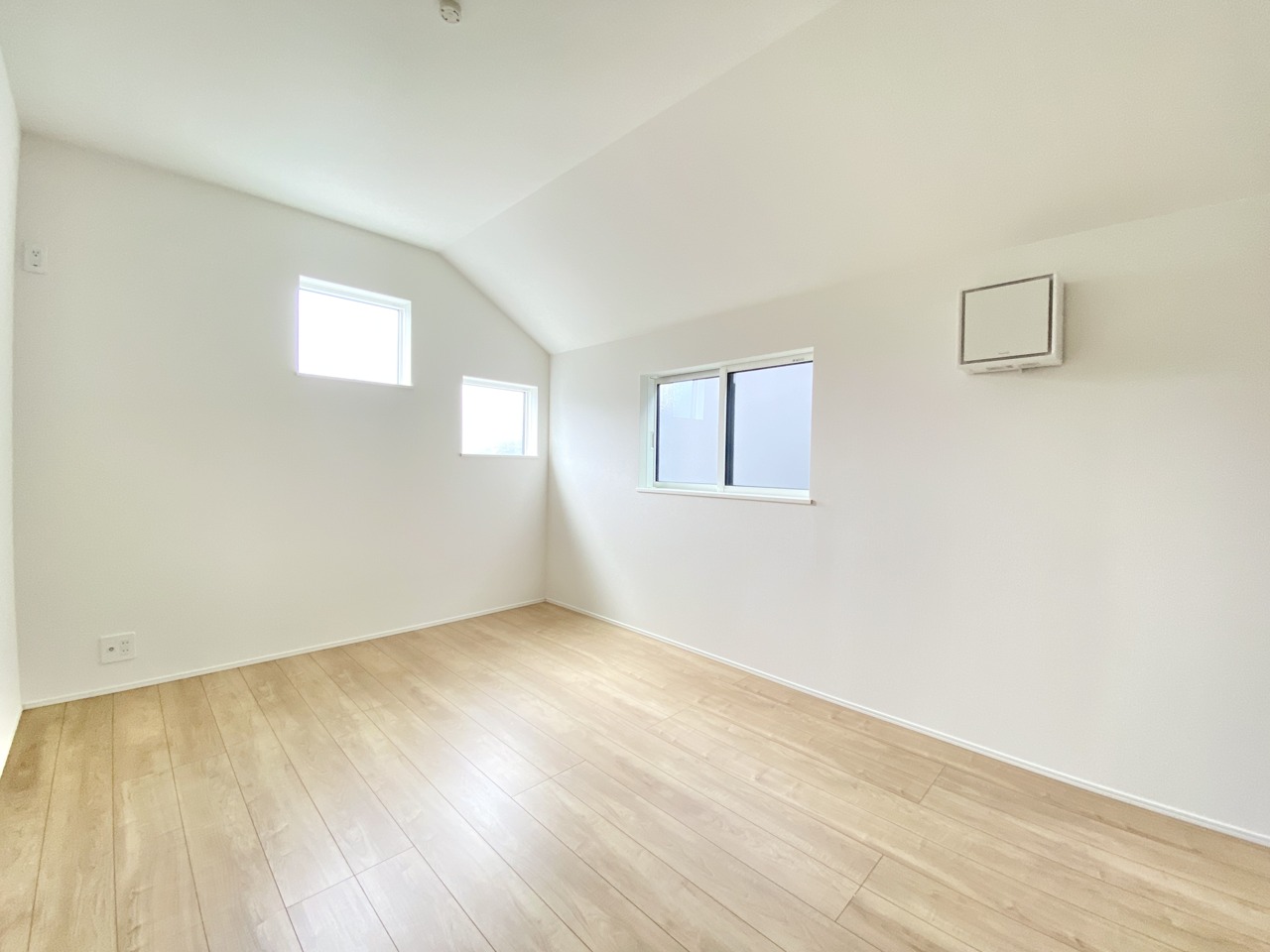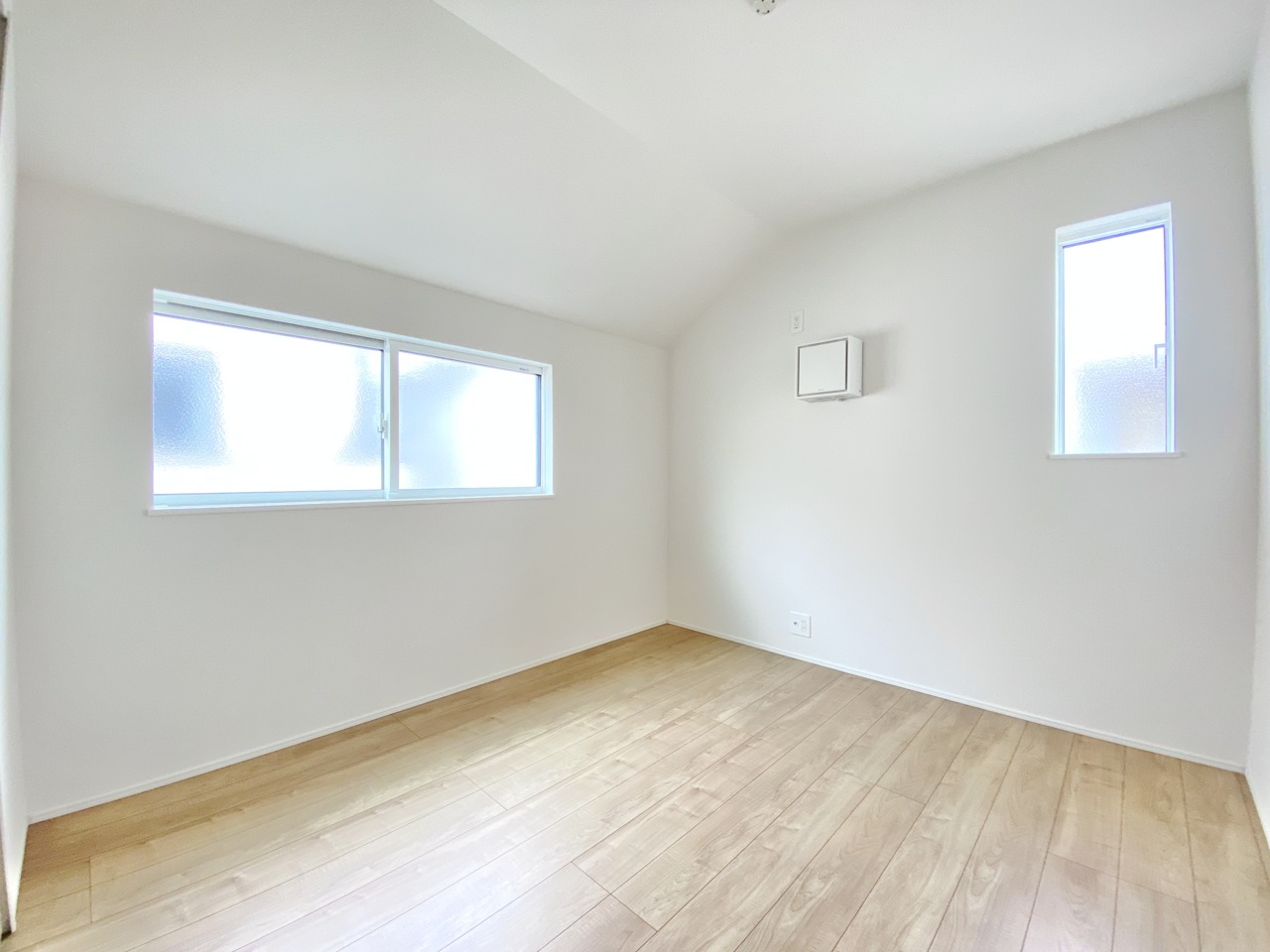 2階約7帖の洋室。全居室2面採光で陽当たり良好です。白を基調とした内装で清潔感を感じられます。