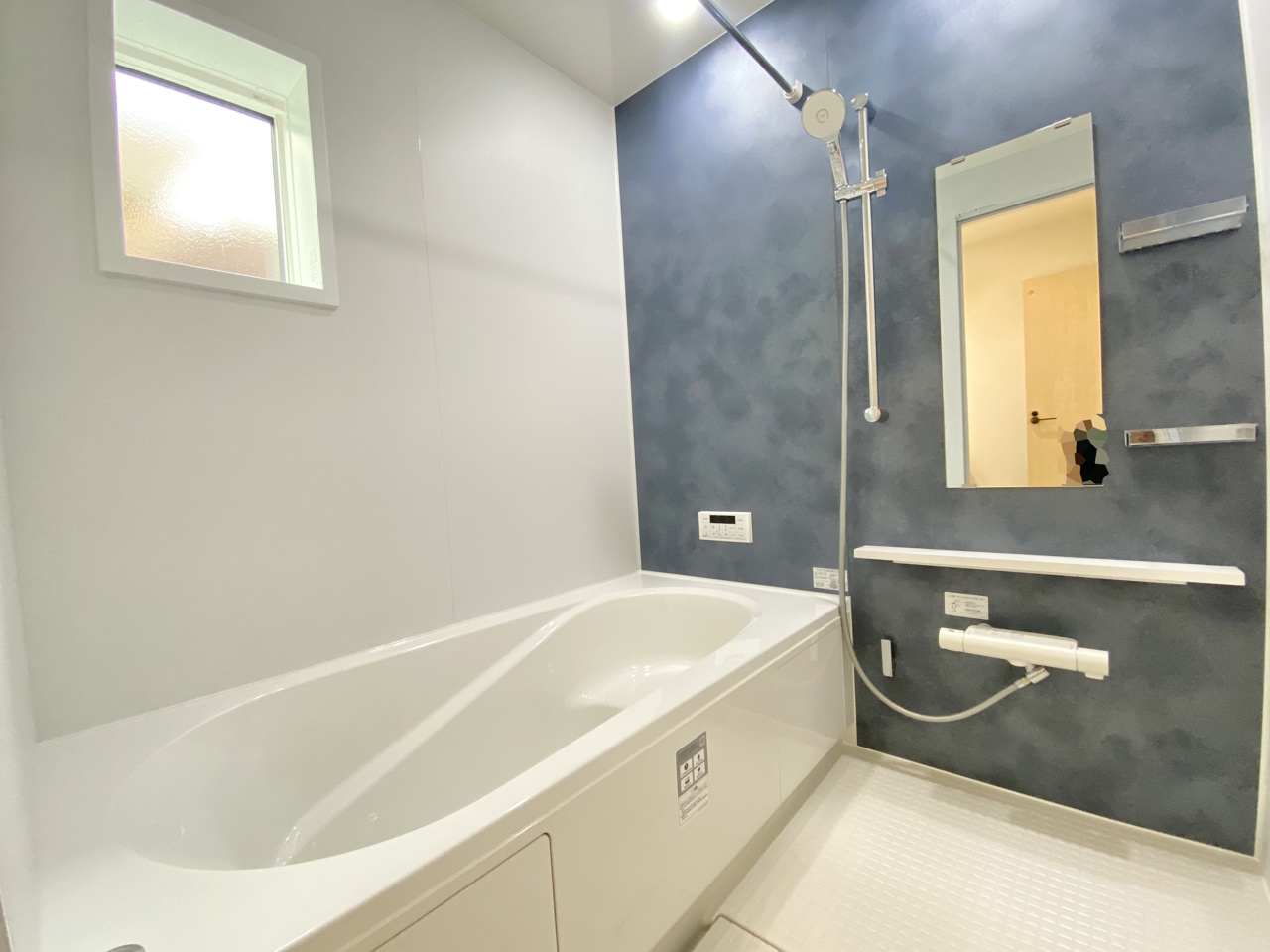 ■浴室乾燥機付きユニットバス(追炊き付き) ユニットバスは全てが浴室のために設計されているため、掃除のしやすさやカビの生えにくさ汚れにくさに特化しています。 素材は汚れが付きにくいものが使用され、お手入れが最小限に抑えられる浴室となっております。