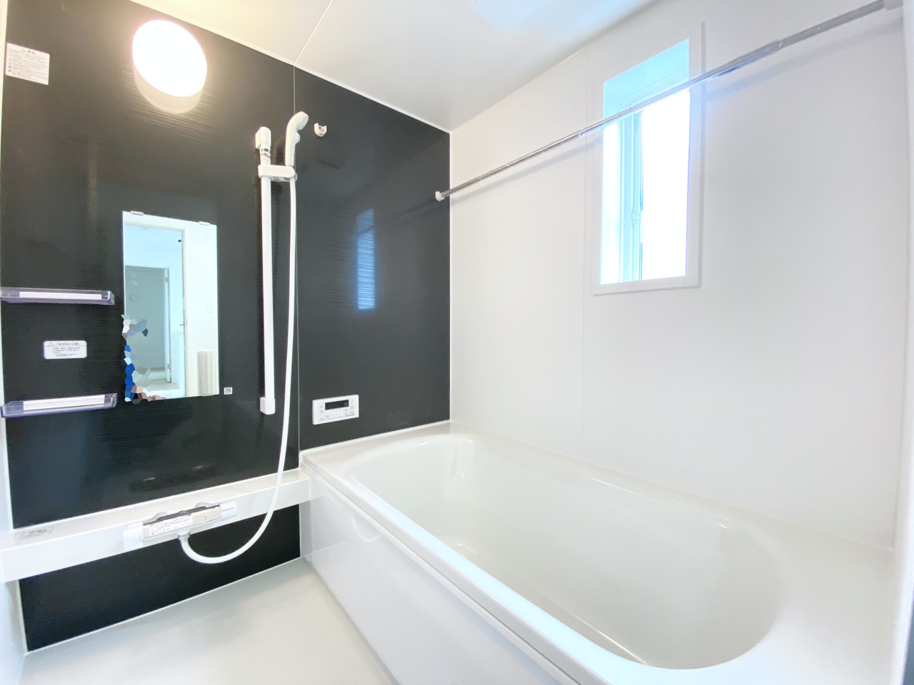 ■浴室乾燥機付きユニットバス(追炊き付き) ユニットバスは全てが浴室のために設計されているため、掃除のしやすさやカビの生えにくさ汚れにくさに特化しています。 素材は汚れが付きにくいものが使用され、お手入れが最小限に抑えられる浴室となっております。