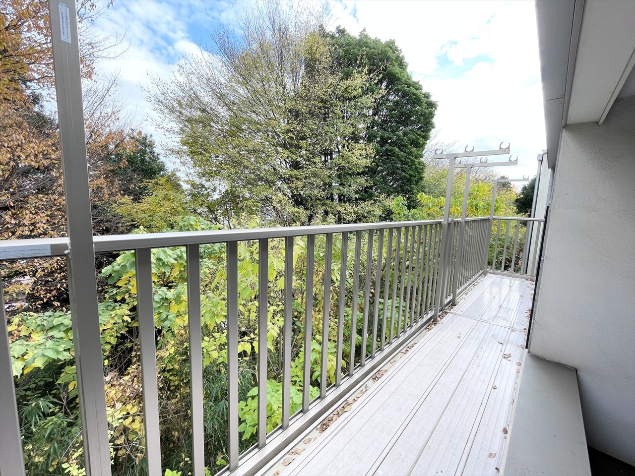 毎日が森林浴!緑に包まれた癒やしのバルコニー。 目の前には豊かな自然が広がり、まるで公園の中にいるような心地よさ。洗濯物を干すついでに、深呼吸。都会の喧騒を忘れさせてくれる、心と体をリフレッシュする場所です。